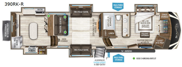 Crafted with high-quality materials, the Solitude 390RK-R is built for long-term use: residential-style finishes, heavy-duty chassis, premium insulation and construction that stands up to extended travel. Whether youre doing seasonal stays, long trips or parking at your favorite lake site this unit delivers.