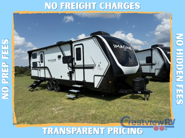 Where will you go with this Imagine travel trailer? The possibilities are endless! You can take your family on an exciting excursion because this trailer has enough sleeping space for everyone with a 60" x 80" queen bed in the private bedroom, a U-shaped dinette and tri-fold sofa in the main living area, and there is a set of 47" x 76" bunk beds with privacy curtains in the rear corner. You can come and go as you please with two entry doors, and the outdoor griddle and refrigerator will be fun to use when the weather is nice. The flip-up countertop extension will make it easier to prepare delicious home cooked meals and the shoe storage area helps to keep things neat and tidy.