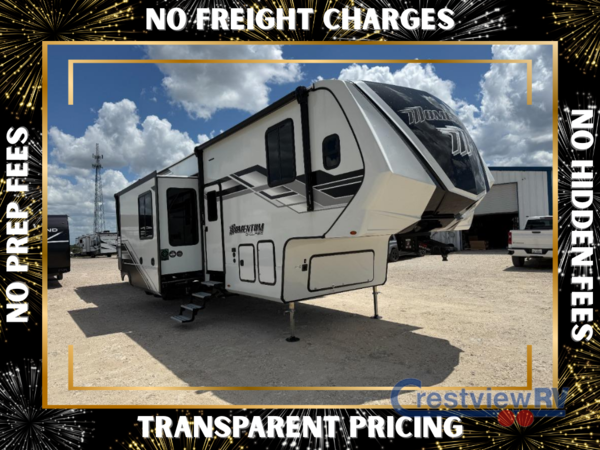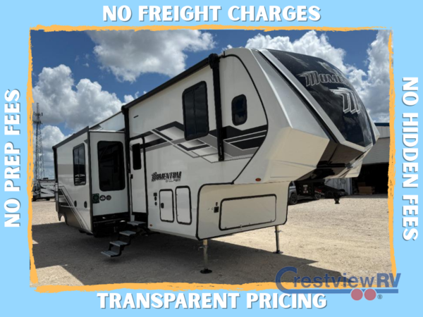 Are you looking for adventure and fun? The Momentum G-Class toy hauler by Grand Design will help you find it! You can explore during any season you choose with the Insulation Package that includes a heated and enclosed underbelly with suspended tanks, a high-capacity furnace, a moisture barrier floor enclosure, and cabinet-mounted heat ducts. Each model includes a fuel station with an interior and exterior gauge, a dovetail rear rend, and 2,500-LB tie-downs anchored into the chassis. Throughout the Momentum G-Class interior, you'll enjoy many comfortable features like large panoramic windows, a shower skylight, USB chargers in the bedroom, and residential cabinetry.