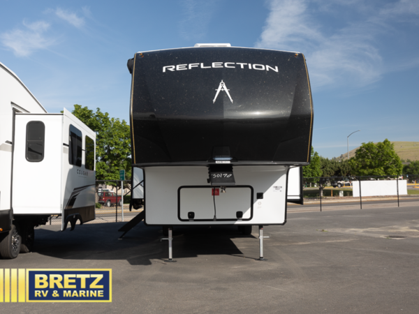 With any Reflection fifth wheel by Grand Design, you will have a solar panel for off-grid camping and a 60 amp charge controller and inverter prep, a Universal All-In-One docking station, unobstructed pass-through storage, and Goodyear Endurance tires. Each is constructed of gel coat exterior sidewalls, residential 5" truss rafters, walk-on roof decking, a fiberglass and radiant foil roof and front cap insulation plus laminated aluminum framed side walls, roof and end walls in slide rooms. Head inside to enjoy residential hardwood cabinet doors, premium Congoleum flooring, a spacious shower with a glass door, and many more comforts!