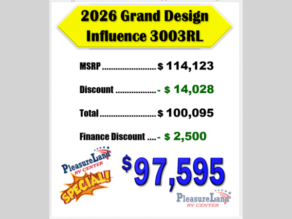 Grand Design Influence fifth wheel 3003RL highlights: