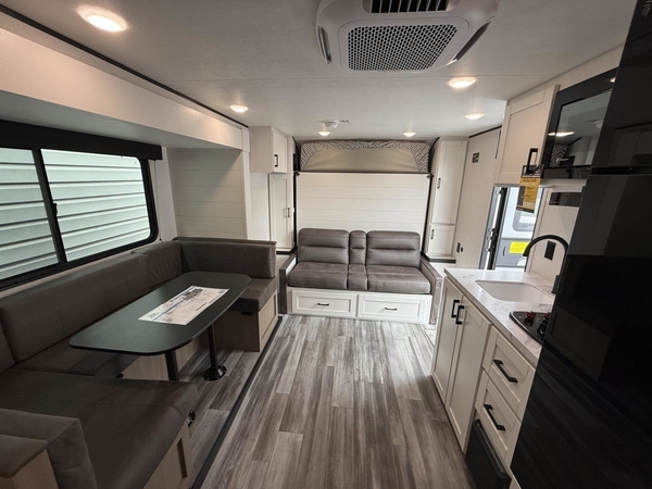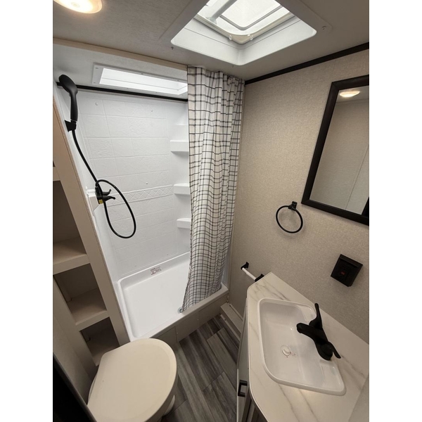 After a long day of exploring, step inside to enjoy instant hot water from the on-demand tankless water heaterup to 60,000 BTU in standard models and 42,000 BTU in the Sport Editionso you can clean up comfortably, just like at home. Oversized G20 dark-tinted windows flood the space with natural light while blocking heat and UV rays, giving you both stunning views and added privacy.