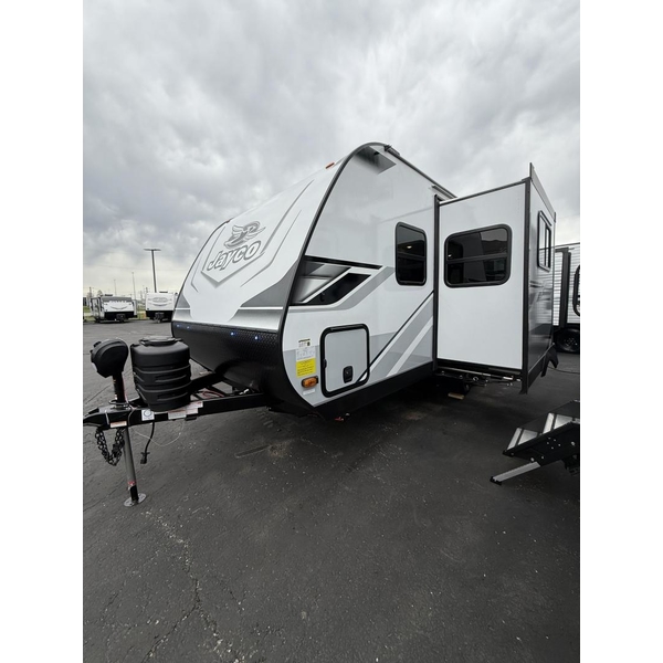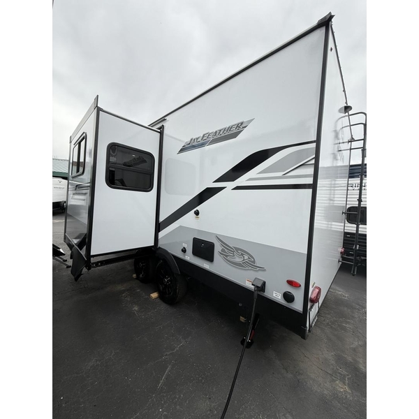 From the light interior decor, to the many standard amenities, this lightweight travel trailer is fully-equipped for all of your adventures, while offering the comforts of home. Relax, unwind and float through the day in the ever-accommodating 2025 Jay Feather Travel Trailer.