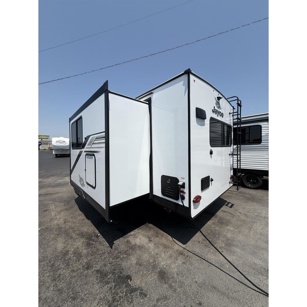 From the light interior decor to the many standard amenities, this lightweight travel trailer is fully equipped for all of your adventures, while offering the comforts of home. Relax, unwind and float through the day in the ever-accommodating 2026 Jay Feather Travel Trailer.