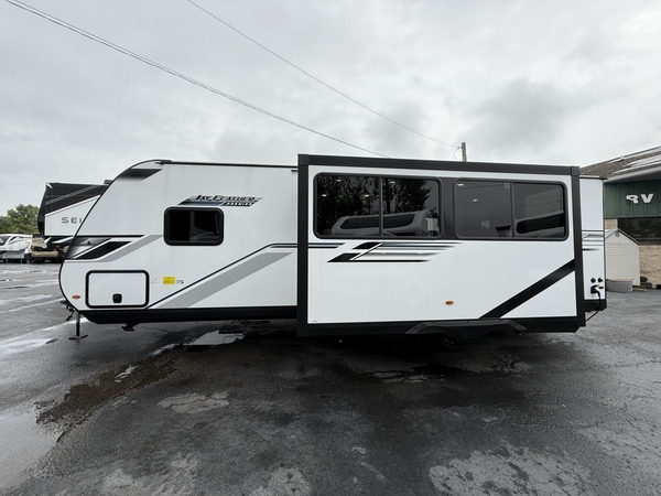 From the light interior decor to the many standard amenities, this lightweight travel trailer is fully equipped for all of your adventures, while offering the comforts of home. Relax, unwind and float through the day in the ever-accommodating 2026 Jay Feather Travel Trailer.
