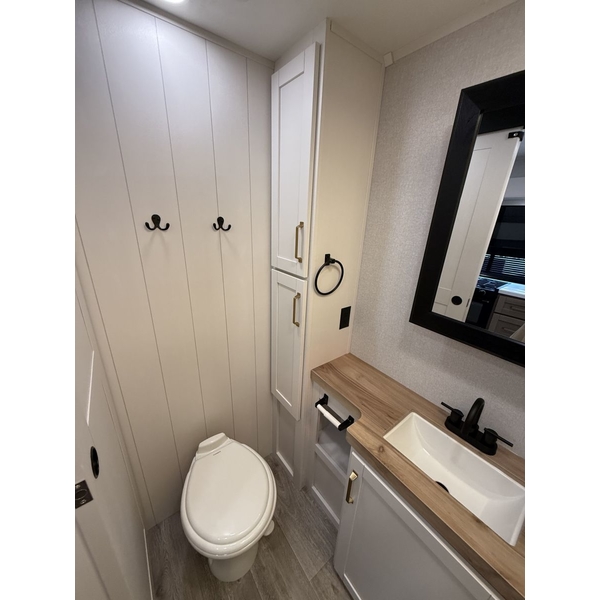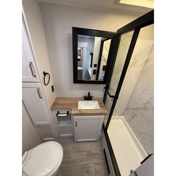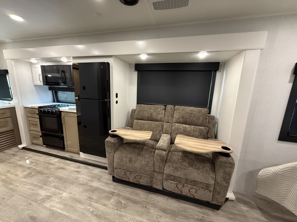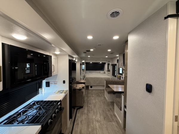 Inside, comfort meets functionality. The Blue Sync speaker system delivers crystal-clear sound at the touch of a button perfect for movie nights or winding down with music. Need extra space? The dinette with foldable chairs and a moveable ottoman lets you customize the living area for dining, lounging, or entertaining.
