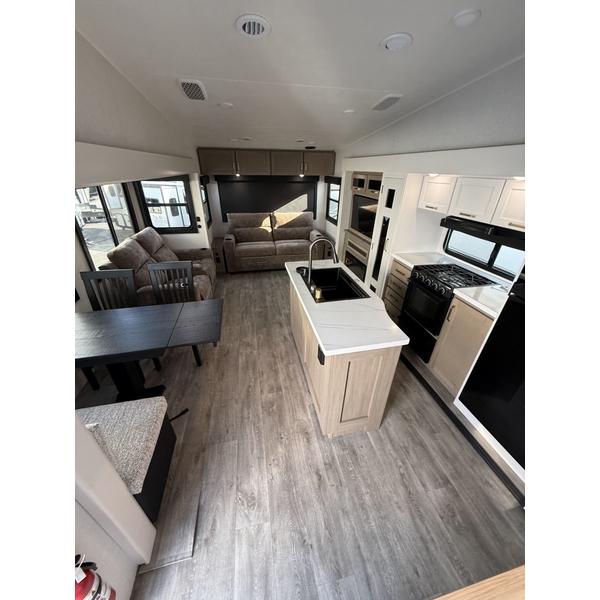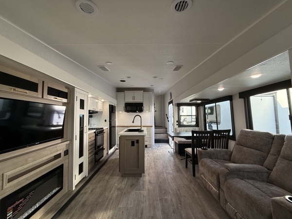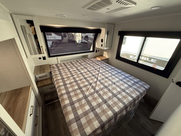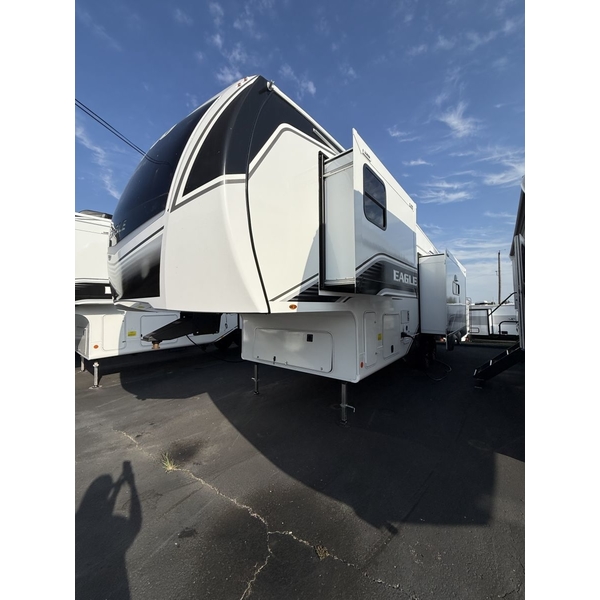 Step into the world of Fifth Wheel RVing with the Eagle HT Fifth Wheel, where high-end luxury meets effortless towability. Designed for explorers who want all of the comforts of home without needing a heavy-duty tow vehicle, this Fifth Wheel delivers spacious interiors, cutting-edge tech, and residential-style finishesall wrapped in a sleek, road-ready design.