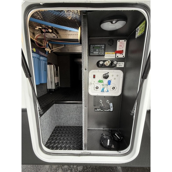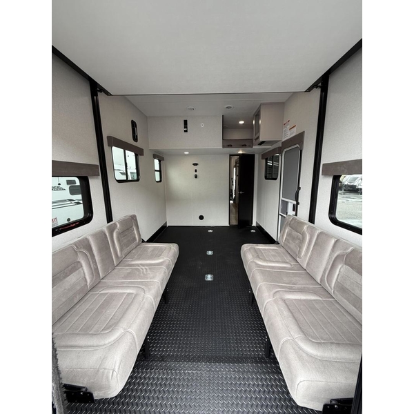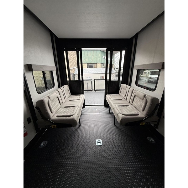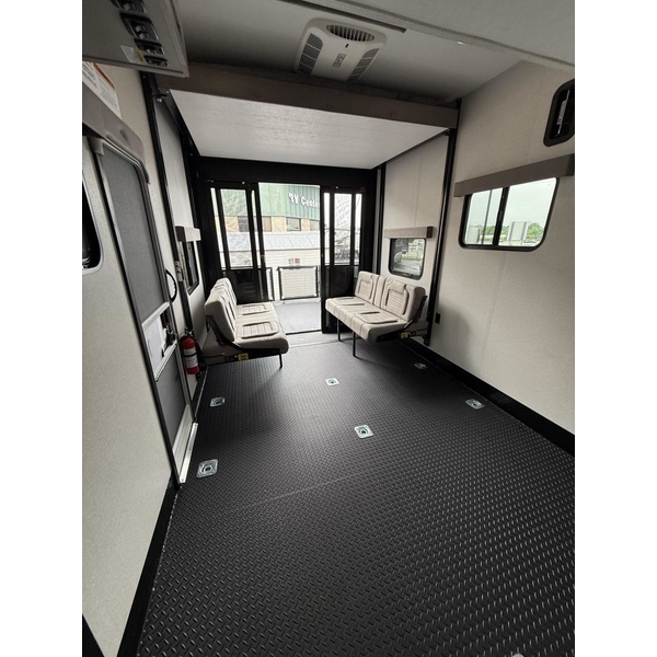 Built on a 102 in. wide structural steel I-beam frame, the Seismic features Stronghold VBL aluminum-framed walls, a Magnum Truss Roof System, and an Alpha roof membrane with a limited lifetime warranty. Reaching your destination is effortless with the 5-Star Handling Package, which includes Dexter® Axles with ABS and Tow Assist, 17.5 in., 16-ply "H" rated Cooper tires, and the MorRyde CRE 3000 Suspension System for a smooth, controlled ride.