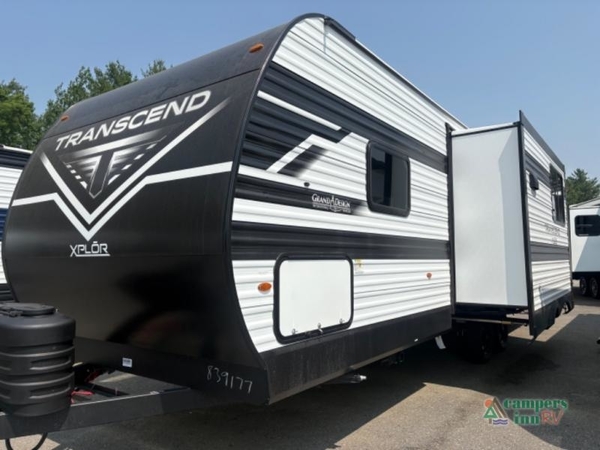 The customer-focused, quality-built Transcend Xplor travel trailers by Grand Design are your ticket to fun and adventure. You will appreciate the power tongue jack when it comes time to set up, as well as the all-in-one utility center and the detachable power cord with an LED light. These models include many outlets throughout, USB ports to charge your gadgets, and a JBL exterior speaker to listen to your favorite tunes. The interior of the Transcend Xplor will have you feeling right at home with upgraded residential furniture, residential countertops, residential cabinet doors, and the list goes on!