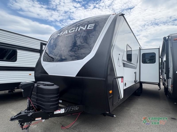 Just imagine leaving the world behind and secluding yourself away with your favorite people in your Grand Design Imagine travel trailer! The Imagine has been designed to enjoy extended season camping and includes a high-capacity furnace, a heated and enclosed underbelly with suspended tanks, a designated heat duct to the subfloor, and a high-density roof insulation with attic vent. You'll have maximum head room on the interior with 81" radius ceilings, and large panoramic windows to let in natural lighting. The exclusive drop-frame pass-through storage compartment is going to allow you to bring along lots of equipment, and the universal docking station is an all-in-one location for utilities and hook-ups. You'll also have oversized tank capacities so that you can fill and empty your tanks less often.