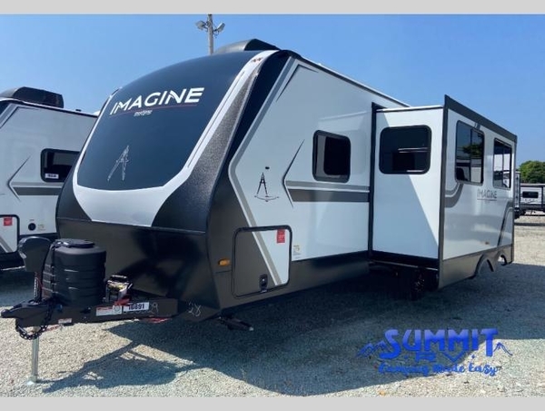 Where will you go with this Imagine travel trailer? The possibilities are endless! You can take your family on an exciting excursion because this trailer has enough sleeping space for everyone with a 60" x 80" queen bed in the private bedroom, a U-shaped dinette and tri-fold sofa in the main living area, and there is a set of 47" x 76" bunk beds with privacy curtains in the rear corner. You can come and go as you please with two entry doors, and the outdoor griddle and refrigerator will be fun to use when the weather is nice. The flip-up countertop extension will make it easier to prepare delicious home cooked meals and the shoe storage area helps to keep things neat and tidy.