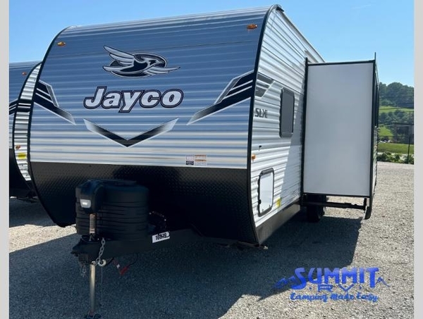 The Jayco Jay Flight SLX travel trailer is quite easy to own because it is lightweight for an easier towing experience. Built on a fully integrated A-frame with galvanized-steel, impact-resistant wheel wells, the Jay Flight SLX has quality at its very foundation. That quality continues on to the electric self-adjusting brakes, easy-lube hubs, Magnum Truss roof system, and LP quick connect. Some of what the mandatory Customer Value Package includes is backup camera prep, Keyed-Alike entry and baggage doors, marine grade exterior speakers, and an on-demand tankless water heater.