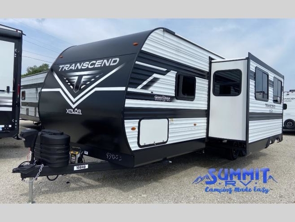 The customer-focused, quality-built Transcend Xplor travel trailers by Grand Design are your ticket to fun and adventure. You will appreciate the power tongue jack when it comes time to set up, as well as the all-in-one utility center and the detachable power cord with an LED light. These models include many outlets throughout, USB ports to charge your gadgets, and a JBL exterior speaker to listen to your favorite tunes. The interior of the Transcend Xplor will have you feeling right at home with upgraded residential furniture, residential countertops, residential cabinet doors, and the list goes on!
