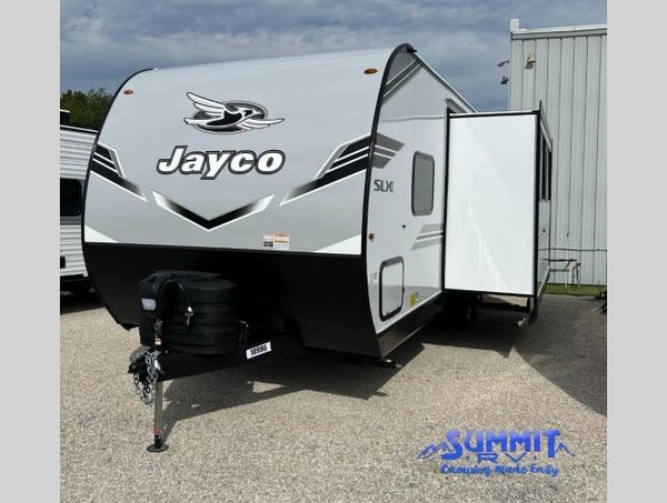 The Jayco Jay Flight SLX travel trailer is quite easy to own because it is lightweight for an easier towing experience. Built on a fully integrated A-frame with galvanized-steel, impact-resistant wheel wells, the Jay Flight SLX has quality at its very foundation. That quality continues on to the electric self-adjusting brakes, easy-lube hubs, Magnum Truss roof system, and LP quick connect. Some of what the mandatory Customer Value Package includes is backup camera prep, Keyed-Alike entry and baggage doors, and an on-demand tankless water heater.