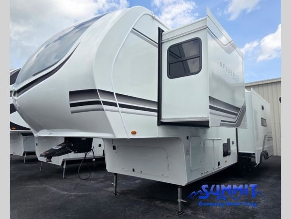 Any Grand Design Influence fifth wheel features five-sided aluminum cage construction with a walk-on roof and a fully enclosed underbelly with heated tanks and storage for all weather camping. For peace of mind, the MORryde CRE3000 Suspension system will provide safe and smooth towing, and the 101" widebody construction offers all the room you need and that is before multiple slides are fully engaged. You will appreciate the Keyed-Alike locks, slam-latch baggage doors with magnetic door catches, exterior security light, and SolidStep entry steps. On the inside, Congoleum flooring, premium roller shades for privacy, a hallway handrail for safety, and nightstands with USB ports to keep all of your electronics fully charged. You will also love the On Demand tankless water heater when showering, plus the added heat and ambiance from an electric fireplace, and so much more!