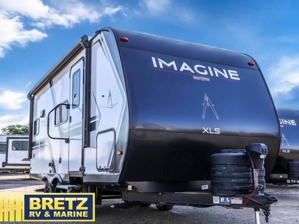 Let your imagination run wild with the possibilities that the Grand Design Imagine XLS travel trailer can provide! The Imagine XLS has been built with oversized tank capacities, an extra-large 2" fresh water drain valve, a ducted A/C system, a power tongue jack, and a heated and enclosed underbelly with suspended tanks. There is a designated heat duct to the subfloor and a residential ductless heating system throughout. For outdoor adventures, the electric awning with LED lights will enable you to stay protected, and the Tuff-Ply pass-thru flooring will withstand your many adventures. You will also love the XLS Solar Package that comes with a 200W roof mounted solar panel, a 30 Amp charge controller, a 12V 10 cu. ft. refrigerator, and roof mounted quick connect plugs!
