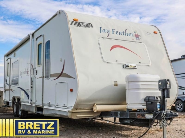 Rear Kitchen, 3 Burner Range, Refrigerator, Double Kitchen Sink, J-Steel Sofa Slideout w/Overhead Cabinet, Dinette, TV Shelf, Tub/Shower, Medicine Cabinet, TV Shelf/Wardrobe, Queen Bed w/Wardrobes Both Sides, and More.