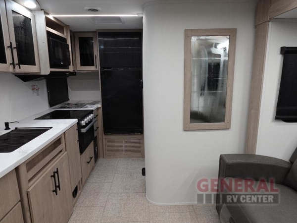The Murphy bed is the eye-catching feature on this Imagine XLS travel trailer! Not only can it fold away in the morning to reveal a sofa for lounging, but it will also provide you with drawer storage under the sofa. Another functional feature is the theater dinette with a removable table in front. It rests on the single slide so that there is more floor space, and it offers you great comfort while you dine across from the LED HDTV. A full bathroom will keep you clean and fresh with its residential walk-in shower, skylight, linen closet, vanity, toilet, and power vent fan.