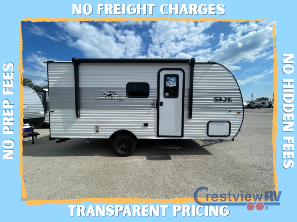 The Jayco Jay Flight SLX travel trailer is quite easy to own because it is lightweight for an easier towing experience. Built on a fully integrated A-frame with galvanized-steel, impact-resistant wheel wells, the Jay Flight SLX has quality at its very foundation. That quality continues on to the electric self-adjusting brakes, easy-lube hubs, and a Magnum Truss roof system. Inside, you'll enjoy vinyl flooring throughout, solid hardwood cabinet doors, residential-style kitchen countertops and many more comforts!