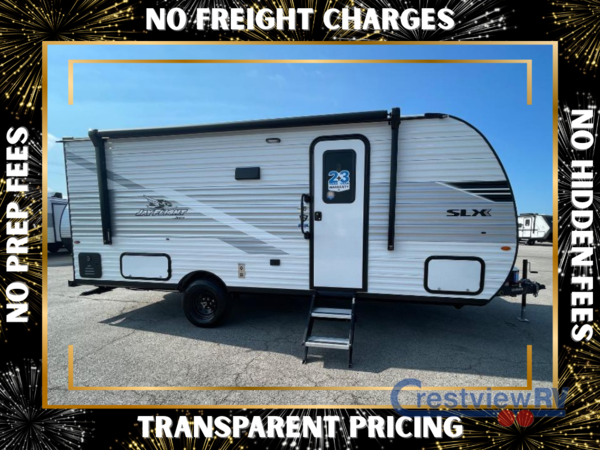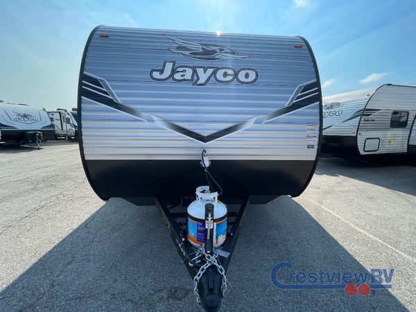 The Jayco Jay Flight SLX travel trailer is quite easy to own because it is lightweight for an easier towing experience. Built on a fully integrated A-frame with galvanized-steel, impact-resistant wheel wells, the Jay Flight SLX has quality at its very foundation. That quality continues on to the electric self-adjusting brakes, easy-lube hubs, Magnum Truss roof system, and LP quick connect. Some of what the mandatory Customer Value Package includes is backup camera prep, Keyed-Alike entry and baggage doors, and an on-demand tankless water heater.