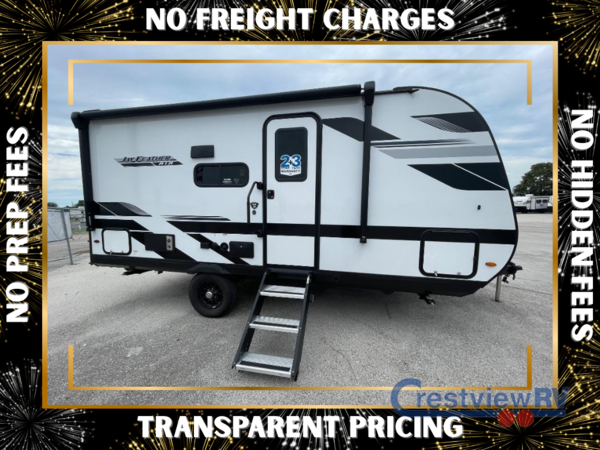 This travel trailer will feel just like home with its front RV queen bed, full rear bath, and fully-equipped kitchen! There is a jack-knife sofa slide out where you can relax each day, and there are swivel sofa tables so you can enjoy meals here too. The TV will let you stay in and watch movies if the weather isn't cooperating, or you can grab the fishing gear from the outside storage and weather the storm! You'll also find plenty of interior storage in the multiple overhead cabinets and the bath medicine cabinet!
