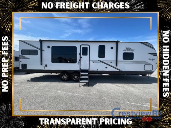The Jayco Jay Flight SLX travel trailer is quite easy to own because it is lightweight for an easier towing experience. Built on a fully integrated A-frame with galvanized-steel, impact-resistant wheel wells, the Jay Flight SLX has quality at its very foundation. That quality continues on to the electric self-adjusting brakes, easy-lube hubs, Magnum Truss roof system, and LP quick connect. Some of what the mandatory Customer Value Package includes is backup camera prep, Keyed-Alike entry and baggage doors, and an on-demand tankless water heater.