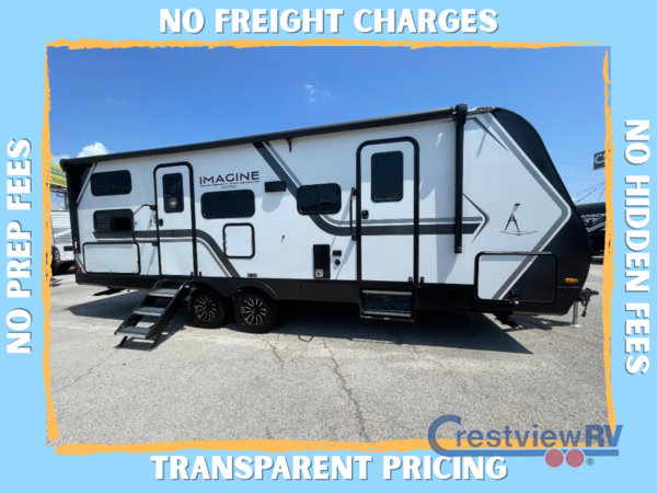 Just imagine leaving the world behind and secluding yourself away with your favorite people in your Grand Design Imagine travel trailer! The Imagine has been designed to enjoy extended season camping and includes a high-capacity furnace, a heated and enclosed underbelly with suspended tanks, a designated heat duct to the subfloor, and a high-density roof insulation with attic vent. You'll have maximum head room on the interior with 81" radius ceilings, and large panoramic windows to let in natural lighting. The exclusive drop-frame pass-through storage compartment is going to allow you to bring along lots of equipment, and the universal docking station is an all-in-one location for utilities and hook-ups. You'll also have oversized tank capacities so that you can fill and empty your tanks less often.
