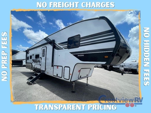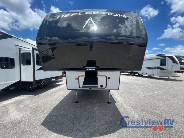 Each Reflection 100 Series fifth wheel by Grand Design is affordable and packed with luxury for unforgettable camping memories! The MorRyde CRE3000 suspension system and Goodyear Endurance tires will provide smooth towing from home to campground. And the solar package with a 180W solar panel, 60 Amp charge controller and 12V refrigerator will allow you to camp for longer periods of time and in more locations! A heated and enclosed underbelly with circulating heat is included in the Arctic 4-Seasons Protection Package, along with a double insulated roof and front cap, and thermofoil insulation under the holding tanks so you can camp all year long if you choose. You will appreciate having an on-demand water heater for hot showers after exploring, and the universal all-in-one docking station will let you monitor your RVs tanks levels and functions with ease. These models also include many luxurious interior features, such as premium Congoleum flooring, pleated shades, residential cabinetry, and matte black fixtures and hardware. Don't let the Reflection 100 Series fifth wheels pass you by!