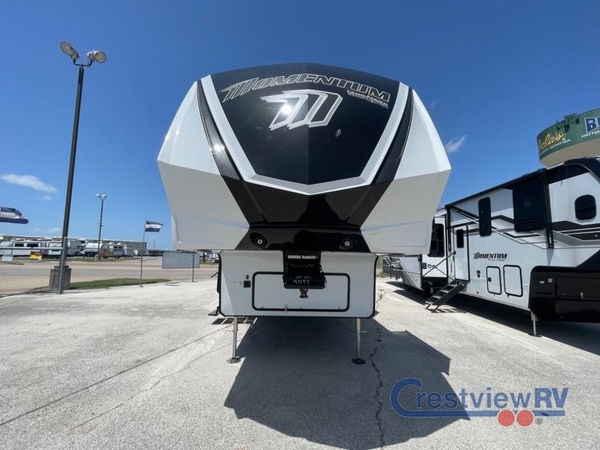 Are you looking for adventure and fun? The Momentum G-Class toy hauler by Grand Design will help you find it! You can explore during any season you choose with the Insulation Package that includes a heated and enclosed underbelly with suspended tanks, a high-capacity furnace, a moisture barrier floor enclosure, and cabinet-mounted heat ducts. Each model includes a fuel station with an interior and exterior gauge, a dovetail rear rend, and 2,500-LB tie-downs anchored into the chassis. Throughout the Momentum G-Class interior, you'll enjoy many comfortable features like large panoramic windows, a shower skylight, USB chargers in the bedroom, and residential cabinetry.
