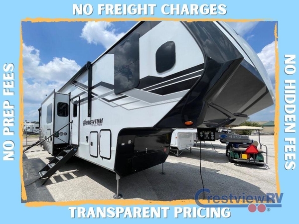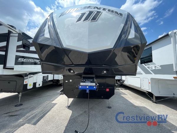 With any Momentum M-Class toy hauler by Grand Design, you will enjoy luxury at every turn! They have been constructed to a superior standard with a thermal roof design, triple insulated main floor and garage floor, and a Rail-Tite underbelly seal that will allow you to camp in all elements. Each model also features an 8' 5" wide body chassis with a wide rail design, no wheel wheels, and a dovetail entry for easier loading. The Stealth A/C system provides maximum cooling power, and the CRE3000 suspension system means you can enjoy a smooth tow each time. You will love the luxurious interior with a professional grade stainless steel cooktop, interior color changing LED accent lighting, a fiberglass shower with a glass door, and solid surface countertops.