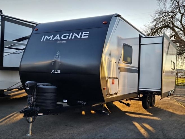 Let your imagination run wild with the possibilities that the Grand Design Imagine XLS travel trailer can provide! The Imagine XLS has been built with oversized tank capacities, an extra-large 2" fresh water drain valve, a ducted A/C system, a power tongue jack, and a heated and enclosed underbelly with suspended tanks. There is a designated heat duct to the subfloor and a residential ductless heating system throughout. For outdoor adventures, the electric awning with LED lights will enable you to stay protected, and the Tuff-Ply pass-thru flooring will withstand your many adventures. You will also love the XLS Solar Package that comes with a 200W roof mounted solar panel, a 40 Amp charge controller, a 12V 10 cu. ft. refrigerator, and roof mounted quick connect plugs!