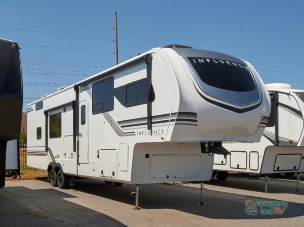 Elevate your RV lifestyle with the 2026 Grand Design Influence 3804BH, a spacious fifth wheel designed for families and groups who crave comfort, convenience, and high-end features. With two private master bedrooms, two full bathrooms, and quad slide-outs, this widebody layout offers unmatched room and versatility for extended adventures.
