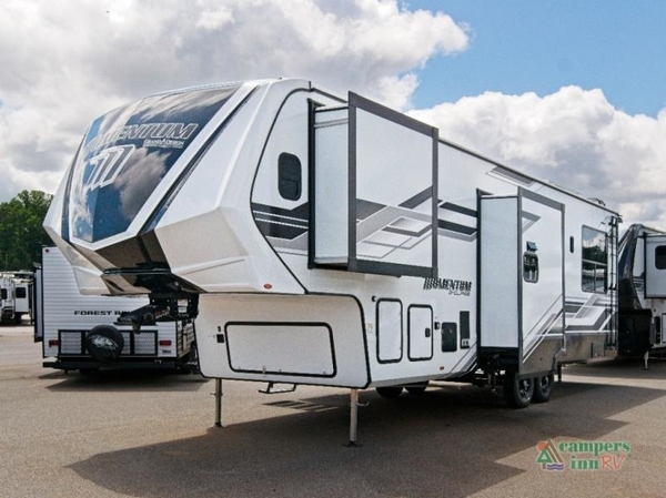 The Momentum G-Class 320G by Grand Design is your ultimate companion for off-road adventures and comfortable living. Unload your gear from the spacious 11' garage, hit the trails, and return to a luxurious interior designed for relaxation and convenience.