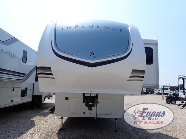 Any Grand Design Influence fifth wheel features five-sided aluminum cage construction with a walk-on roof and a fully enclosed underbelly with heated tanks and storage for all weather camping. For peace of mind, the MORryde CRE3000 Suspension system will provide safe and smooth towing, and the 101" widebody construction offers all the room you need and that is before multiple slides are fully engaged. You will appreciate the Keyed-Alike locks, slam-latch baggage doors with magnetic door catches, exterior security light, and SolidStep entry steps. On the inside, Congoleum flooring, premium roller shades for privacy, a hallway handrail for safety, and nightstands with USB ports to keep all of your electronics fully charged. You will also love the On Demand tankless water heater when showering, plus the added heat and ambiance from an electric fireplace, and so much more!