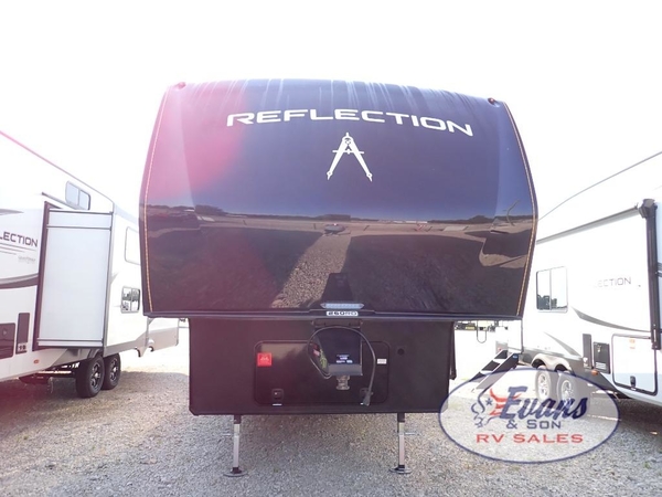 With any Reflection 150 Series fifth wheel by Grand Design, there is more available payload capacity and a broader range of half-ton trucks capable of towing this fifth wheel, and no slider hitch is needed thanks to the 90-degree turning radius which makes them short bed friendly and easier to tow. The mandatory Ultimate Power package provides a "One-Touch" automatic leveling system and a detachable power cord with LED light for easy setup, plus motion sensor pass-through lighting and entry lighting, and the Tire Linc TPMS will help you stay safe on the road. The interior offers residential luxury from the cabinetry and premium Congoleum flooring, to the booth dinette and residential-style window treatment. Make your refined decision today!
