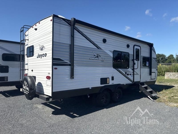 With any Jay Flight travel trailer or toy hauler by Jayco, you can enjoy camping trips to the max! There are a wide variety of floorplans to choose from, so whether you're looking for a couple's unit or bunkhouse model, there is sure to be a Jay Flight for you. Each model is constructed with a Magnum Truss roof system, an enclosed and heated underbelly, and I-Class cambered structural steel I-beams for added support. The interior will have you feeling right at home with residential-style kitchen countertops and hidden cabinet door hinges, vinyl flooring throughout, including slide floors, plus a 6' 9" ceiling height for added head space. The standard features continue on with the mandatory Customer Value Package that includes Keyed-Alike entry and baggage doors, an Overland 1 Solar Package, a Rock-Solid stabilizer system, backup and side view camera prep, and so much more!