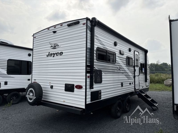 The Jayco Jay Flight SLX travel trailer is quite easy to own because it is lightweight for an easier towing experience. Built on a fully integrated A-frame with galvanized-steel, impact-resistant wheel wells, the Jay Flight SLX has quality at its very foundation. That quality continues on to the electric self-adjusting brakes, easy-lube hubs, Magnum Truss roof system, and LP quick connect. Some of what the mandatory Customer Value Package includes is backup camera prep, Keyed-Alike entry and baggage doors, marine grade exterior speakers, and an on-demand tankless water heater.