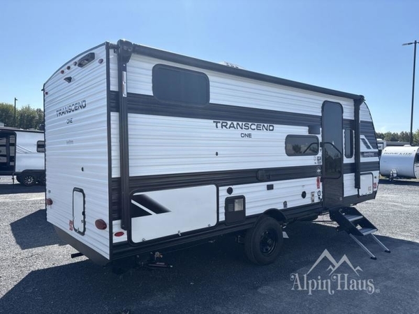 With any Transcend One travel trailer by Grand Design, you will enjoy lightweight towing thanks to their single-axle. There are many interior comforts to make camping easier than ever, such as recessed lighting, residential countertops, and a 6' 6" interior height. Each model is constructed with a heated and enclosed underbelly with suspended tanks, a moisture barrier floor enclosure, and Thermofoil over the roof and front cap for added protection. And a JBL sound system will let you listen to tunes as you visit under the power awning with a Fusion light!