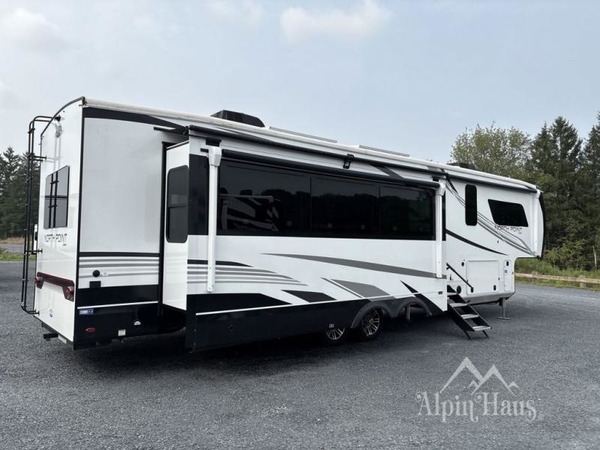 With any North Point fifth wheel by Jayco you begin with a strong foundation with a custom frame, designed and sized specifically to best support each unit. Constructed with Stronghold VBL aluminum framed, vacuum bond laminated walls and the Magnum Truss XL6 roof system with an Alpha roof membrane system, which is the strongest tested roof in the industry. The 5-Star Handling package is included with Uniroyal tires, a MORryde rubber pin box, Dexter axles with Nev-R-Adjust brakes, MORryde CRE-3000 rubberized suspension and wet bolt fasteners and bronze bushings. The interior has handcrafted hardwood glazed doors and drawers, vinyl flooring throughout, an integrated under-mount sink in the main bathroom, plus so much more you just have to see one to believe it all!