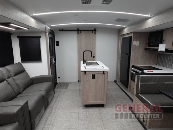 A great travel trailer for larger families or those that enjoy traveling with a few friends! This Imagine quad bunk model features two private bedrooms, with the master up front including a private entry/exit door just beyond a spacious walk-through bathroom that features a 30" x 36" shower with skylight to bring in more natural lighting each day, plus a toilet, sink and linen storage. In the kitchen, a nice island for food prep and cleaning up makes it easy to be part of the conversation in the room while you get meals ready for everyone. Speaking of food prep, how about the outside griddle and 1.6 cu. ft. refrigerator which is perfect for cooking outside, or for making late night snacks when all are enjoying the evening under the stars or in lawn chairs under one of two 9' 6" awnings with LED lighting. Your kids can bring along extra guests with the added sleeping that a quad bunk model provides!