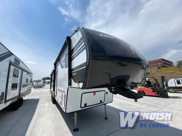 With any Reflection fifth wheel by Grand Design, you will have a solar panel for off-grid camping and a 60 amp charge controller and inverter prep, a Universal All-In-One docking station, unobstructed pass-through storage, and Goodyear Endurance tires. Each is constructed of gel coat exterior sidewalls, residential 5" truss rafters, walk-on roof decking, a fiberglass and radiant foil roof and front cap insulation plus laminated aluminum framed side walls, roof and end walls in slide rooms. Head inside to enjoy residential hardwood cabinet doors, premium Congoleum flooring, a spacious shower with a glass door, and many more comforts!