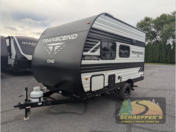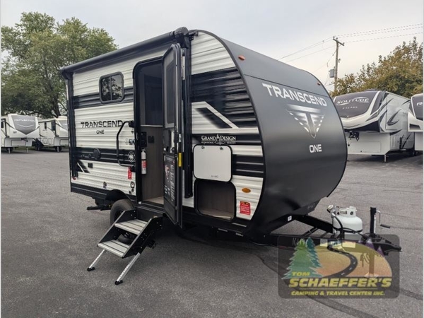With any Transcend One travel trailer by Grand Design, you will enjoy lightweight towing thanks to their single-axle. There are many interior comforts to make camping easier than ever, such as recessed lighting, residential countertops, and a 6' 6" interior height. Each model is constructed with a heated and enclosed underbelly with suspended tanks, a moisture barrier floor enclosure, and Thermofoil over the roof and front cap for added protection. And a JBL sound system will let you listen to tunes as you visit under the power awning with a Fusion light!