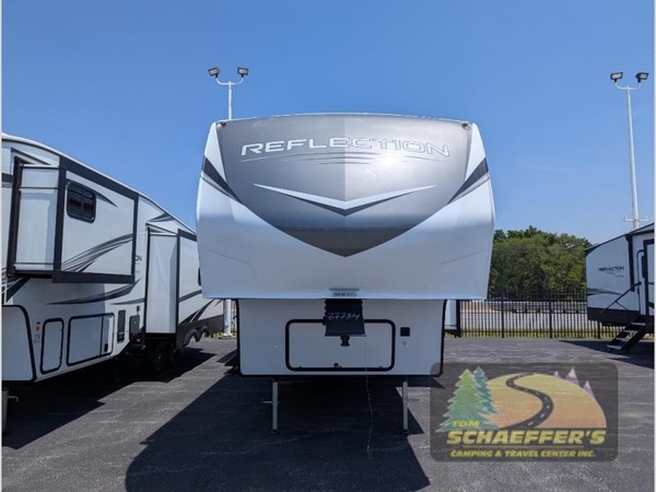 With any Reflection fifth wheel by Grand Design, you will have a solar panel for off-grid camping and a 60 amp charge controller and inverter prep, a Universal All-In-One docking station, unobstructed pass-through storage, and Goodyear Endurance tires. Each is constructed of gel coat exterior sidewalls, residential 5" truss rafters, walk-on roof decking, a fiberglass and radiant foil roof and front cap insulation plus laminated aluminum framed side walls, roof and end walls in slide rooms. Head inside to enjoy residential hardwood cabinet doors, premium Congoleum flooring, a spacious shower with a glass door, and many more comforts!