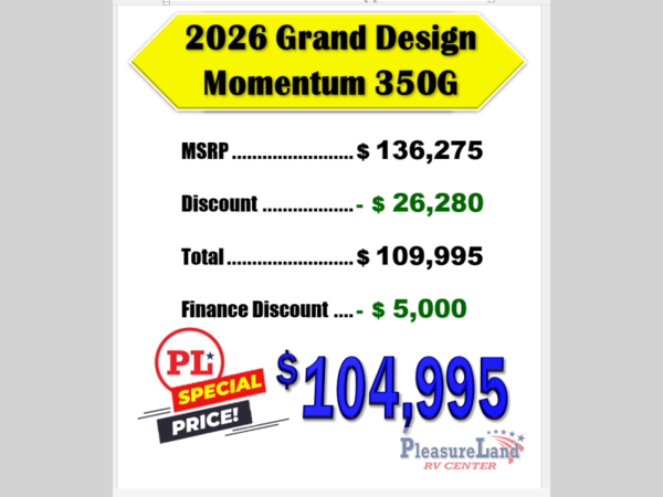 Grand Design Momentum G-Class toy hauler 350G highlights: