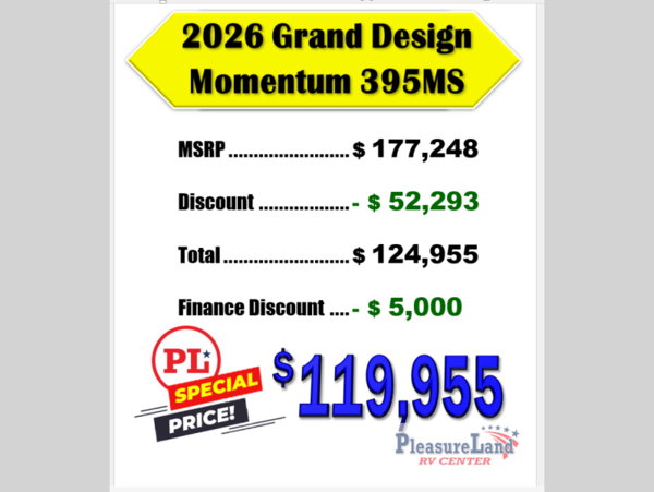 Grand Design Momentum M-Class toy hauler 395MS highlights: