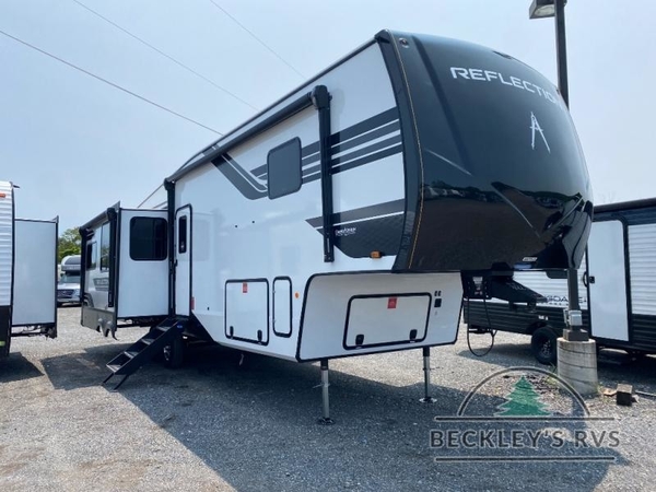 With any Reflection fifth wheel by Grand Design, you will have a solar panel for off-grid camping and a 60 amp charge controller and inverter prep, a Universal All-In-One docking station, unobstructed pass-through storage, and Goodyear Endurance tires. Each is constructed of gel coat exterior sidewalls, residential 5" truss rafters, walk-on roof decking, a fiberglass and radiant foil roof and front cap insulation plus laminated aluminum framed side walls, roof and end walls in slide rooms. Head inside to enjoy residential hardwood cabinet doors, premium Congoleum flooring, a spacious shower with a glass door, and many more comforts!