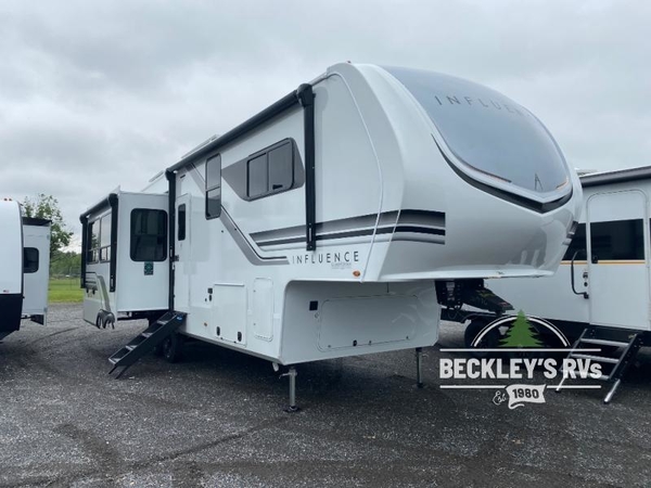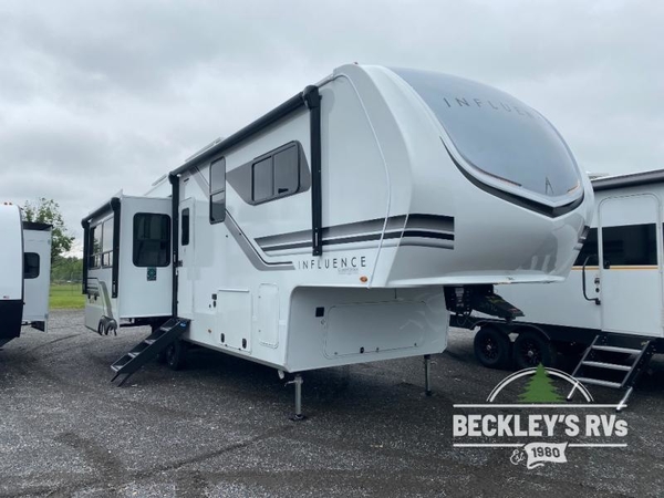 Any Grand Design Influence fifth wheel features five-sided aluminum cage construction with a walk-on roof and a fully enclosed underbelly with heated tanks and storage for all weather camping. For peace of mind, the MORryde CRE3000 Suspension system will provide safe and smooth towing, and the 101" widebody construction offers all the room you need and that is before multiple slides are fully engaged. You will appreciate the Keyed-Alike locks, slam-latch baggage doors with magnetic door catches, exterior security light, and SolidStep entry steps. On the inside, Congoleum flooring, premium roller shades for privacy, a hallway handrail for safety, and nightstands with USB ports to keep all of your electronics fully charged. You will also love the On Demand tankless water heater when showering, plus the added heat and ambiance from an electric fireplace, and so much more!