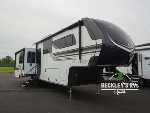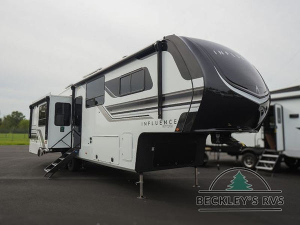 Any Grand Design Influence fifth wheel features five-sided aluminum cage construction with a walk-on roof and a fully enclosed underbelly with heated tanks and storage for all weather camping. For peace of mind, the MORryde CRE3000 Suspension system will provide safe and smooth towing, and the 101" widebody construction offers all the room you need and that is before multiple slides are fully engaged. You will appreciate the Keyed-Alike locks, slam-latch baggage doors with magnetic door catches, exterior security light, and SolidStep entry steps. On the inside, Congoleum flooring, premium roller shades for privacy, a hallway handrail for safety, and nightstands with USB ports to keep all of your electronics fully charged. You will also love the On Demand tankless water heater when showering, plus the added heat and ambiance from an electric fireplace, and so much more!
