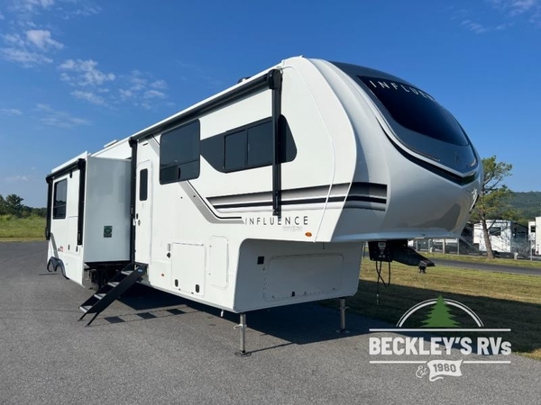 Any Grand Design Influence fifth wheel features five-sided aluminum cage construction with a walk-on roof and a fully enclosed underbelly with heated tanks and storage for all weather camping. For peace of mind, the MORryde CRE3000 Suspension system will provide safe and smooth towing, and the 101" widebody construction offers all the room you need and that is before multiple slides are fully engaged. You will appreciate the Keyed-Alike locks, slam-latch baggage doors with magnetic door catches, exterior security light, and SolidStep entry steps. On the inside, Congoleum flooring, premium roller shades for privacy, a hallway handrail for safety, and nightstands with USB ports to keep all of your electronics fully charged. You will also love the On Demand tankless water heater when showering, plus the added heat and ambiance from an electric fireplace, and so much more!