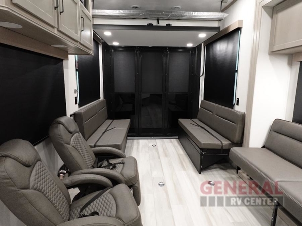 Are you looking for adventure and fun? The Momentum G-Class toy hauler by Grand Design will help you find it! You can explore during any season you choose with the Insulation Package that includes a heated and enclosed underbelly with suspended tanks, a high-capacity furnace, a moisture barrier floor enclosure, and cabinet-mounted heat ducts. Each model includes a fuel station with an interior and exterior gauge, a dovetail rear rend, and 2,500-LB tie-downs anchored into the chassis. Throughout the Momentum G-Class interior, you'll enjoy many comfortable features like large panoramic windows, a shower skylight, USB chargers in the bedroom, and residential cabinetry.